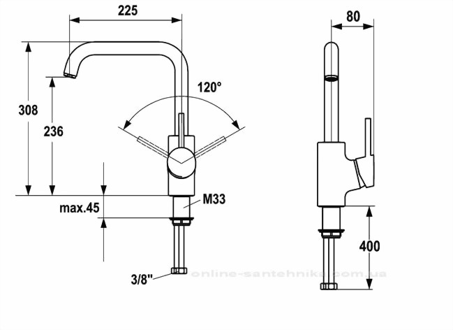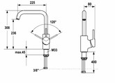 Однорычажный смеситель для кухни с донным клапаном и поворотным изливом, выступ 225мм