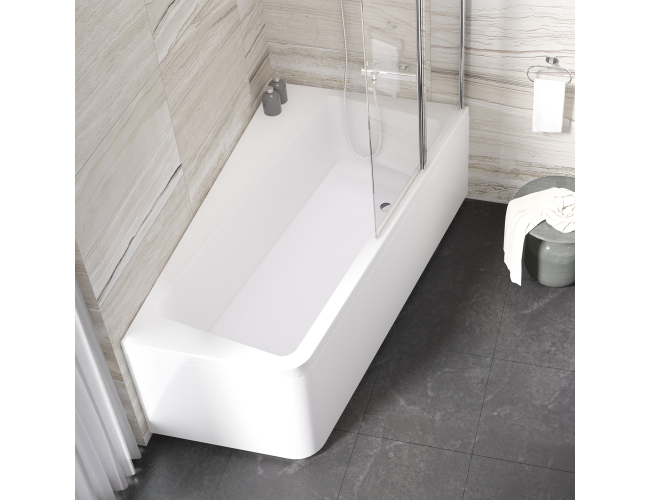 Дизайнер Kryštof Nosál взял классическую прямоугольную ванну и повернул ее на 10°. Так ванна кажется ближе, ее нетипичное расположение предлагает новые возможности с точки зрения практичности. При использовании шторы для ванны обеспечивает широкое душевое пространство и большую поверхность для вещей, которую можно использовать в качестве сидения.
