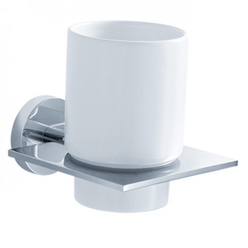Прочная латунная конструкция с хромовым покрытием цвета матовый хром крепится к стене и держит изящный керамический стакан
