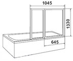Состоит из двух элементов, которые можно взаимно сложить и затем все изделие повернуть к стене. Поэтому в сложенном состоянии практически не занимает в ванной комнате место. Ширина разложенной шторки составляет 1045 мм.