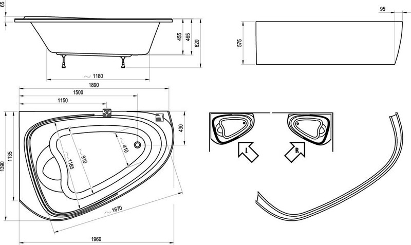 АКРИЛОВАЯ АСИММЕТРИЧНАЯ ВАННА ДВУХМЕСТНАЯ LOVESTORY II L/R
