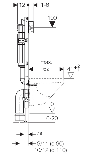 458.160.00.1 - Duofix UP182 монтажный элемент для подвесного унитаза, с фронтальным управлением, для смывных клавиш “Delta“ (линия Стандарт);