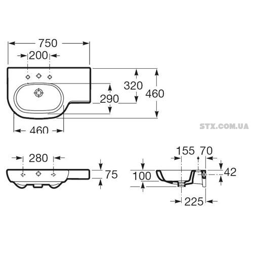Умывальник угловой Roca Меридиан 75см