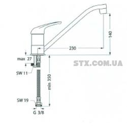 Смеситель SIRIUS кухня хр. Катридж 35. Производитель Болгария. Кликните по картинке, чтобы узнать размеры.