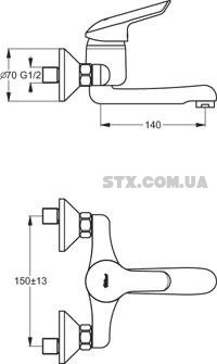 Смеситель SEVA-II настенный L140мм хр В7928АА