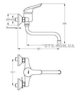 Смеситель SEVA-II настенный S200мм хр В7934АА. Латунный корпус, диаметр катриджа 47мм. Производство Болгария. Кликните по картинке, чтобы узнать размеры.