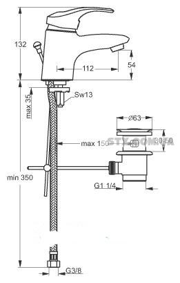 Смеситель SEVA-MIX умывальник хр В7377АА. Латунный корпус, катридж 47мм. Производство Болгария. Кликните по картинке, чтобы узнать размеры.