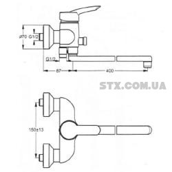 Смеситель VIDIMA STORM ванна хр L400 б/акс В7842АА. Латунный корпус, катридж 47мм. Производство Болгария. Кликните по картинке, чтобы узнать размеры.