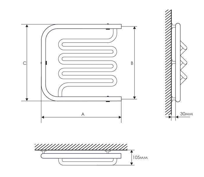 ПОЛОТЕНЦЕСУШИТЕЛЬ ПОКРЫТ ПОРОШКОВОЙ ТЕРМОЭМАЛЬЮ БЕЛОГО ЦВЕТА