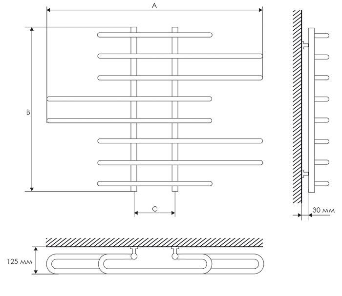 Диаметр: стойка Ø30, толщина 2мм; перемычка Ø20, толщина 1,5 мм