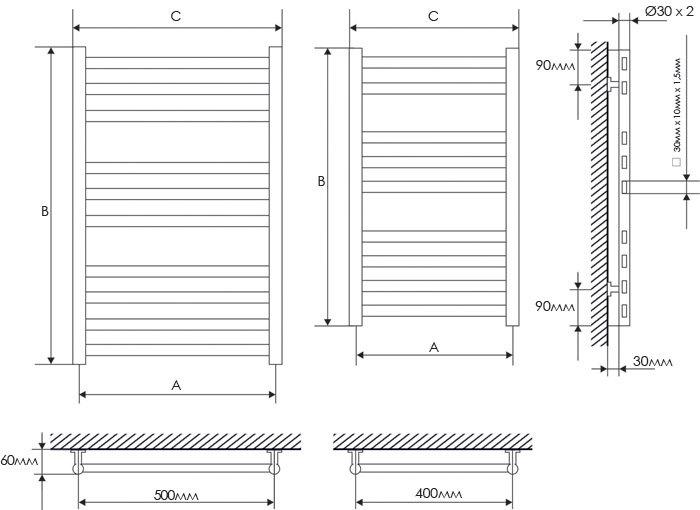 Диаметр: стойка Ø30, толщина 2мм; перемычка Ø20, толщина 1,5 мм