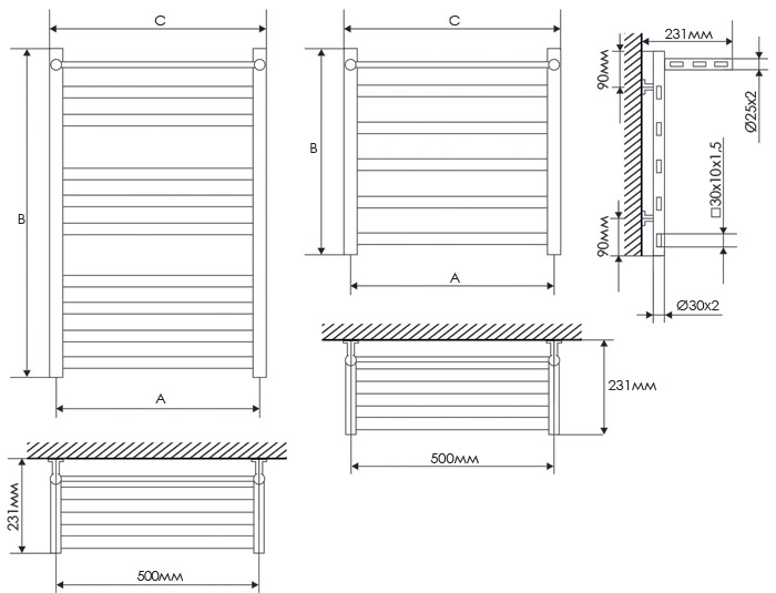 Диаметр: стойка Ø30, толщина 2мм; перемычка Ø20, толщина 1,5 мм