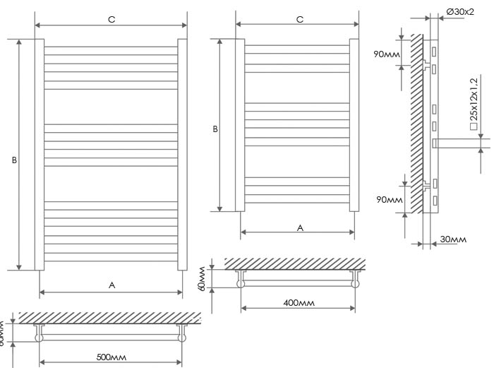 Полотенцесушитель Кватро П7 Э 400 х 600