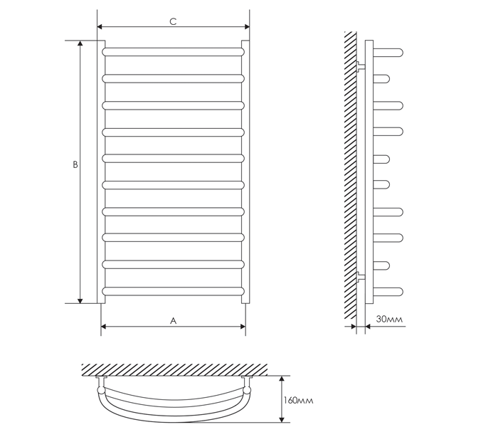 Диаметр: стойка Ø30, толщина 2мм перемычка Ø20, толщина 1,5 мм