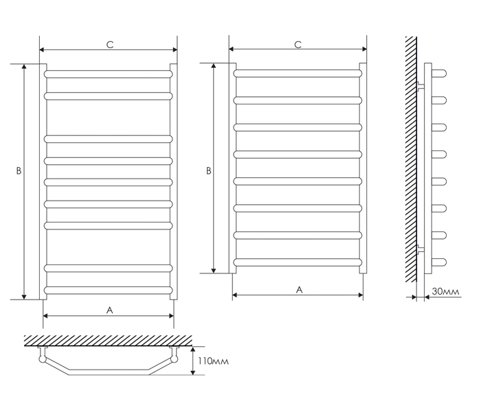 Диаметр: стойка Ø30, толщина 2мм; перемычка Ø20, толщина 1,5 мм