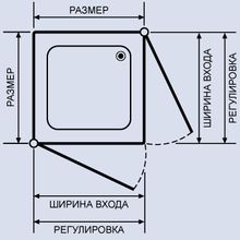 | Размер | Цвет профиля | Стекло | Ширина входа | Регулировка | Артикул |