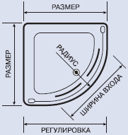 | Размер | Цвет профиля | Стекло | Ширина входа | Регулировка | Радиус | Артикул |