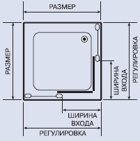 | Размер | Цвет профиля | Стекло | Ширина входа | Регулировка | Артикул |