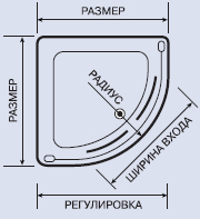 | Размер | Цвет профиля | Стекло | Ширина входа | Регулировка | Радиус | Артикул |