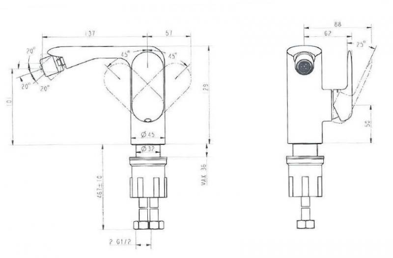 - Гибкий подвод воды, длинна шлангов 35 см,