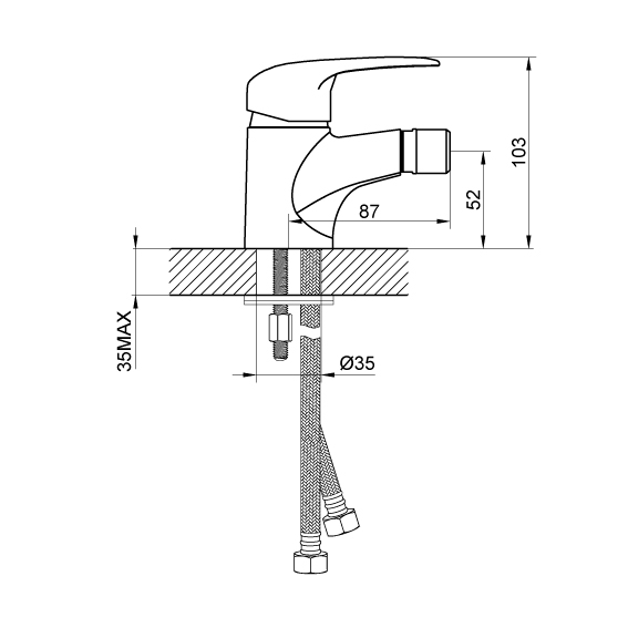 - Гибкий подвод воды, длинна шлангов 35 см,