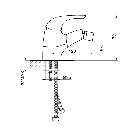 - Гибкий подвод воды, длинна шлангов 35 см,