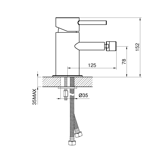 - Гибкий подвод воды, длинна шлангов 35 см,