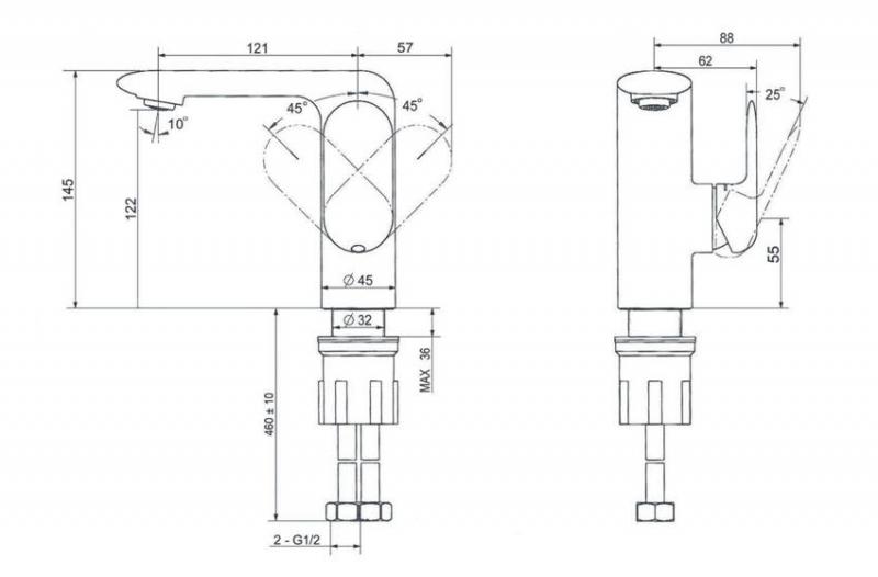 - Разница давлений холодной и гарячей воды: ± 10 %