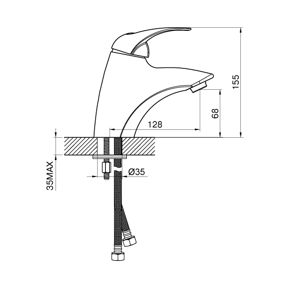 - Гибкий подвод воды, длинна шлангов 35 см, гайка 1/2 дюйма